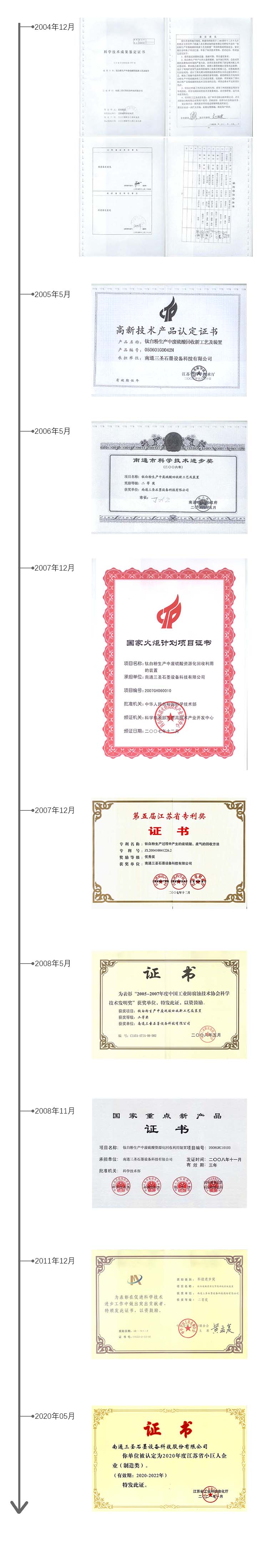 南通三圣所有这些荣誉的取得,离不开长期坚持的以科技创新引领企业发展的经营战略。企业从2008年起连续5次被认定为国家高新技术企业,建有江苏省工业废酸资源回收利用工程技术研究中心,建有国家博士后科研工作站,建有上海交通大学研究生实习实践基地。